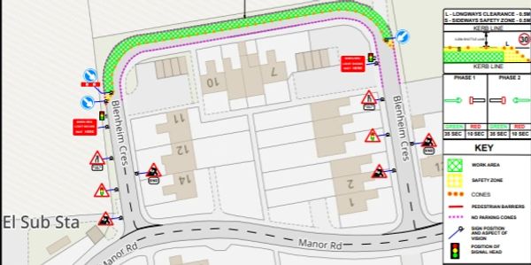 Every project starts with a clear, compliant plan. Our in-house design team produces detailed CAD Traffic Management drawings tailored to your site requirements. These plans not only meet local authority and Chapter 8 regulations, but also provide your teams with clear, easy-to-follow layouts that guarantee safety, efficiency, and smooth project delivery.